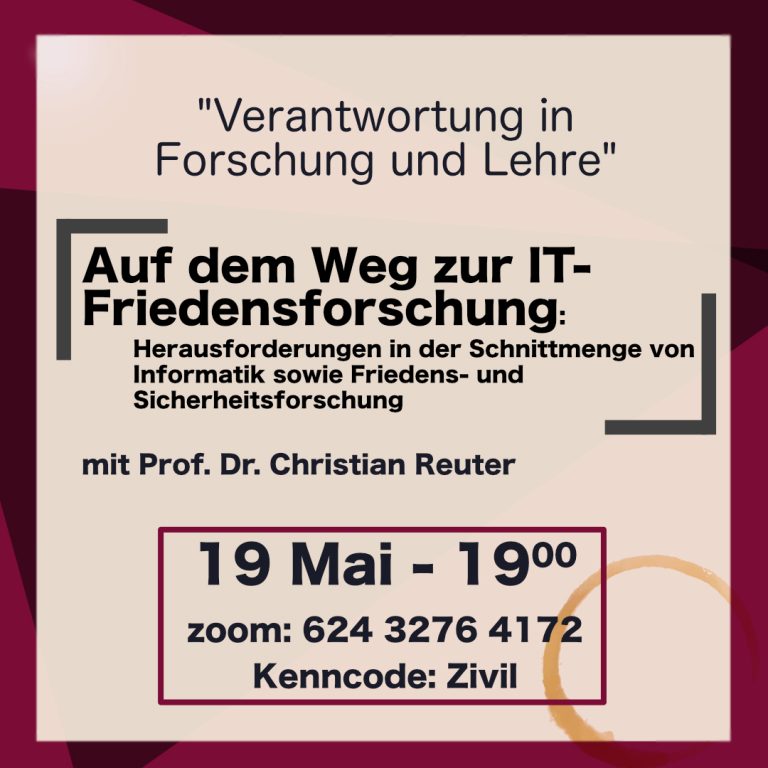 Der nächste Vortrag der Veranstaltungsreihe “Verantwortung in Forschung und Lehre” widmet sich dem spannenden Themenbereich von Friedensforschung in der IT […]